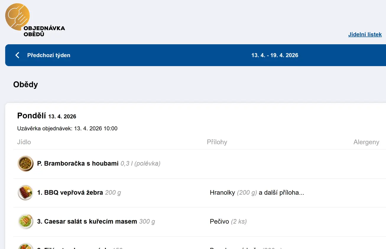 Vaše jediná starost bude, co si sami dáte k jídlu. Systém si sám načte jídelníček a objednávky vždy odevzdá včas a bez chyb.