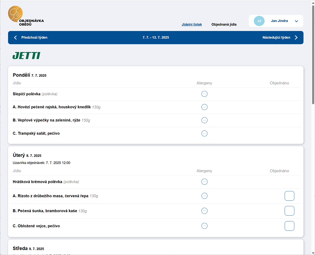 Ještě donedávna obcházela zaměstnance sekretářka a zapisovala jednotlivé obědy ručně. Jak potvrzuje pan Miroslav Štěrba, člen představenstva společnosti JETTI: „Paní musela obejít dílnu, ptát se každého, co si dá. Pak se to všechno zapisovalo na papír. Často se stávalo, že zbylo jídlo a nikdo přesně nevěděl proč – jestli někdo zapomněl, nebo onemocněl. Teď máme adresný systém a přesně víme, kdo má co objednáno a kdo si oběd vyzvedl.“