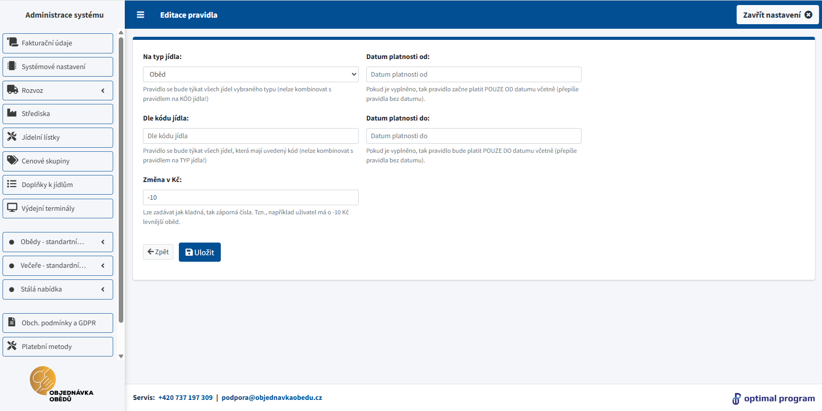 Pokud by výsledná cena vyšla záporná, systém ji automaticky nastaví na 0 Kč.