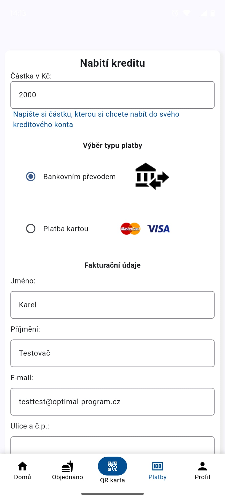 Terminály (objednávkový / výdejový) se v aplikaci spouštět nedají. Pokud potřebujete výdej jídel na telefonu, je to možné pouze přes webové rozhraní.