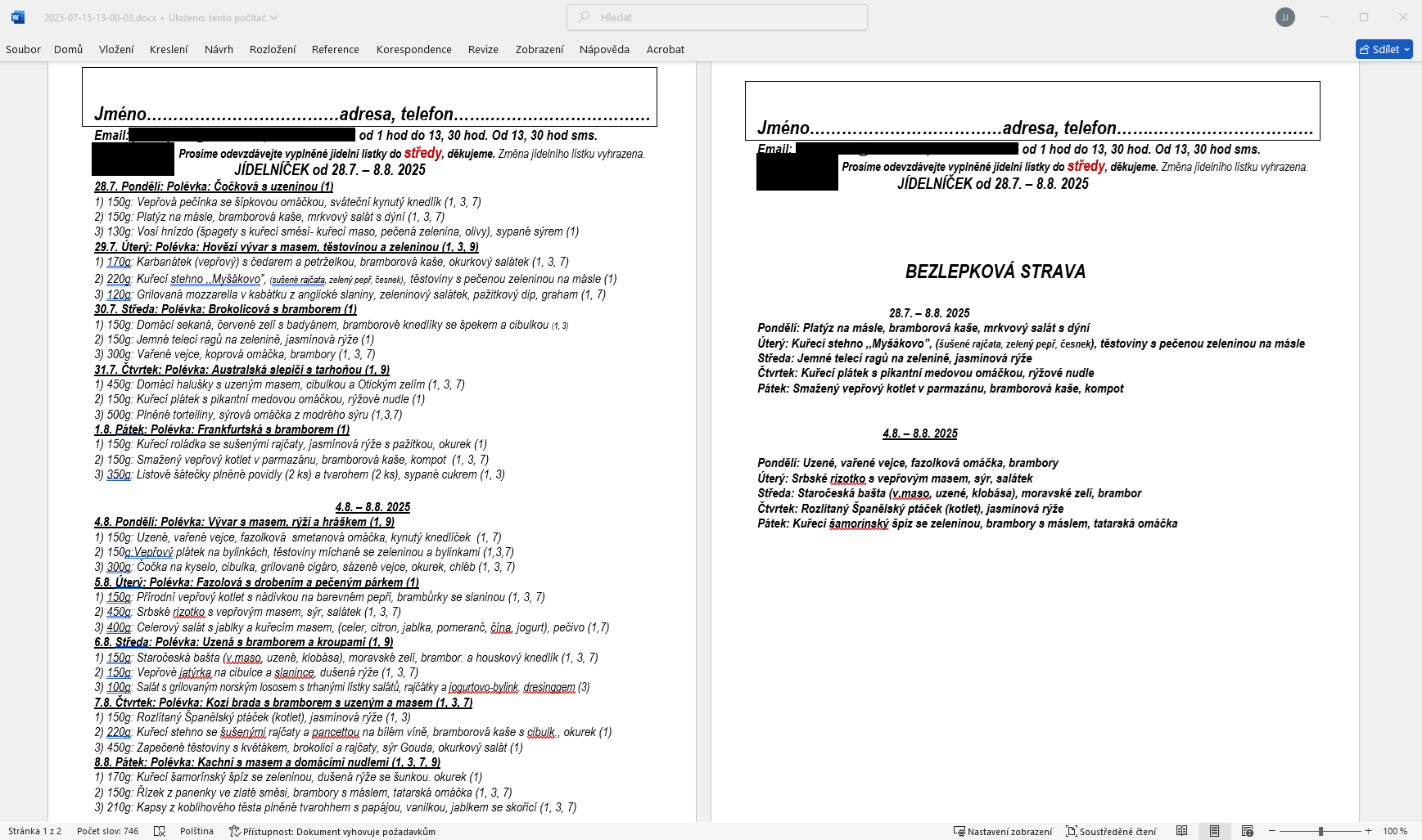 - Vložte text jídelníčku nebo nahrajte soubor.