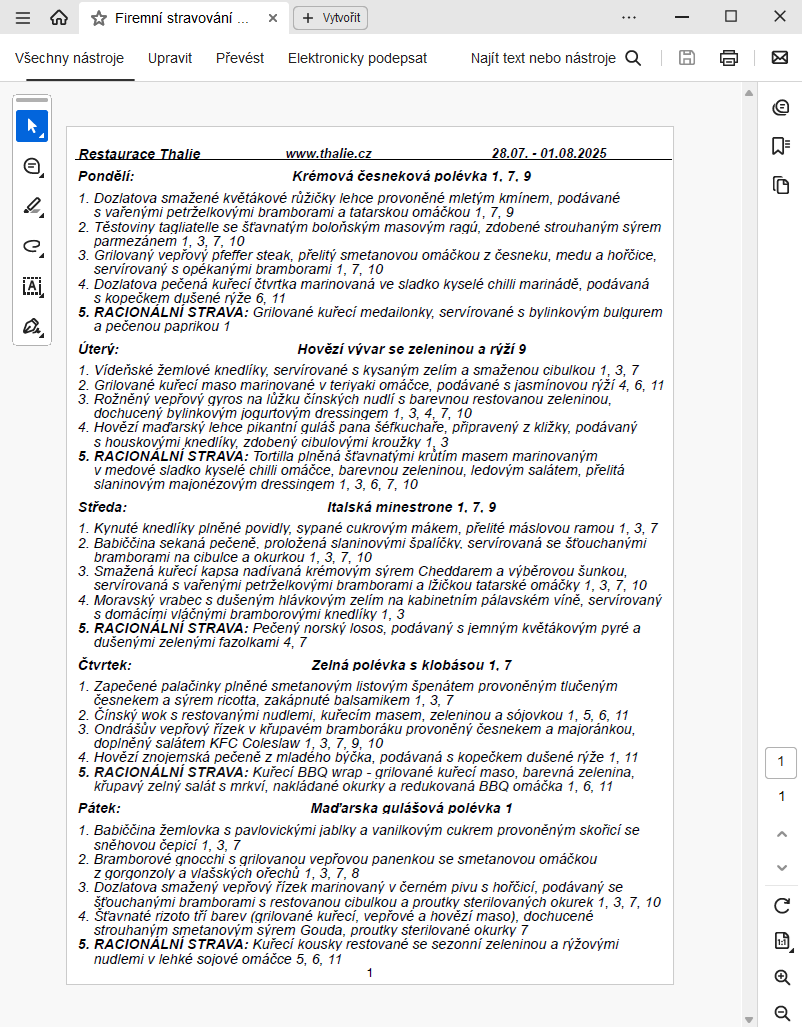 - Upřesnění formátu: kde jsou v textu dny, jak se značí přílohy, jak jsou psané alergeny.