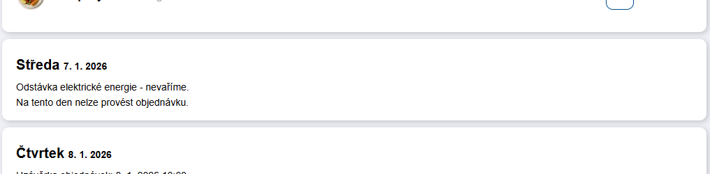 - Blokované dny – dny nastavené v administraci, kdy se nevaří (např. firemní akce) – viz Blokace dní.