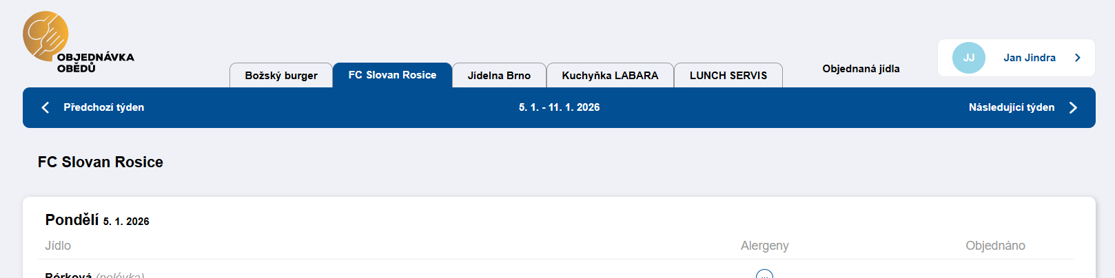 Objednávkový formulář pracuje vždy s jedním konkrétním jídelníčkem. Více jídelních lístků dává smysl ve chvíli, kdy má provoz více provozoven, oddělené nabídky pro různé skupiny strávníků, nebo když jedna firma spravuje více firem/provozů pod jedním systémem. Uživatel tak může vybírat z více nabídek podle toho, kam patří nebo odkud se stravuje.
