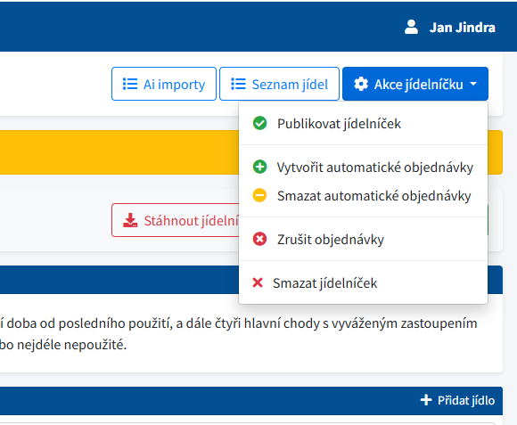 V nabídce Akce jídelníčku najdete důležité hromadné operace: