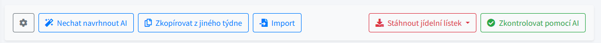 Chcete jídelníček pouze přebírat? Pokračujte do sekcí Nahrávání jídelníčku přes AI a Standardní import jídelníčku.