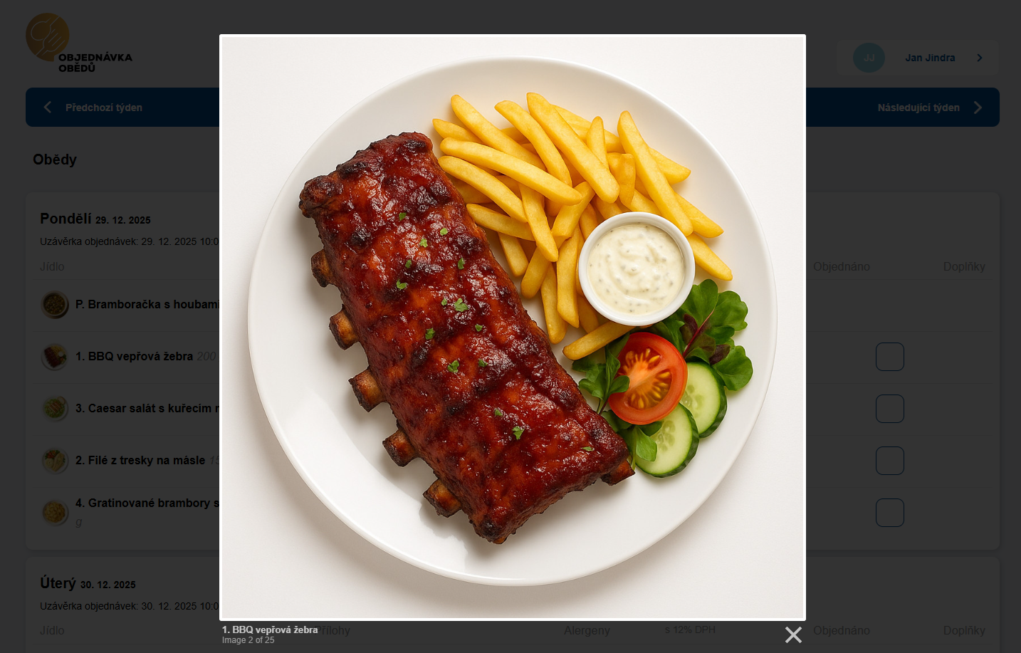 Je-li povoleno nahrávání obrázků, můžete ke každému jídlu připojit fotku. Obrázky se zobrazují v objednávkovém formuláři uživatelům.