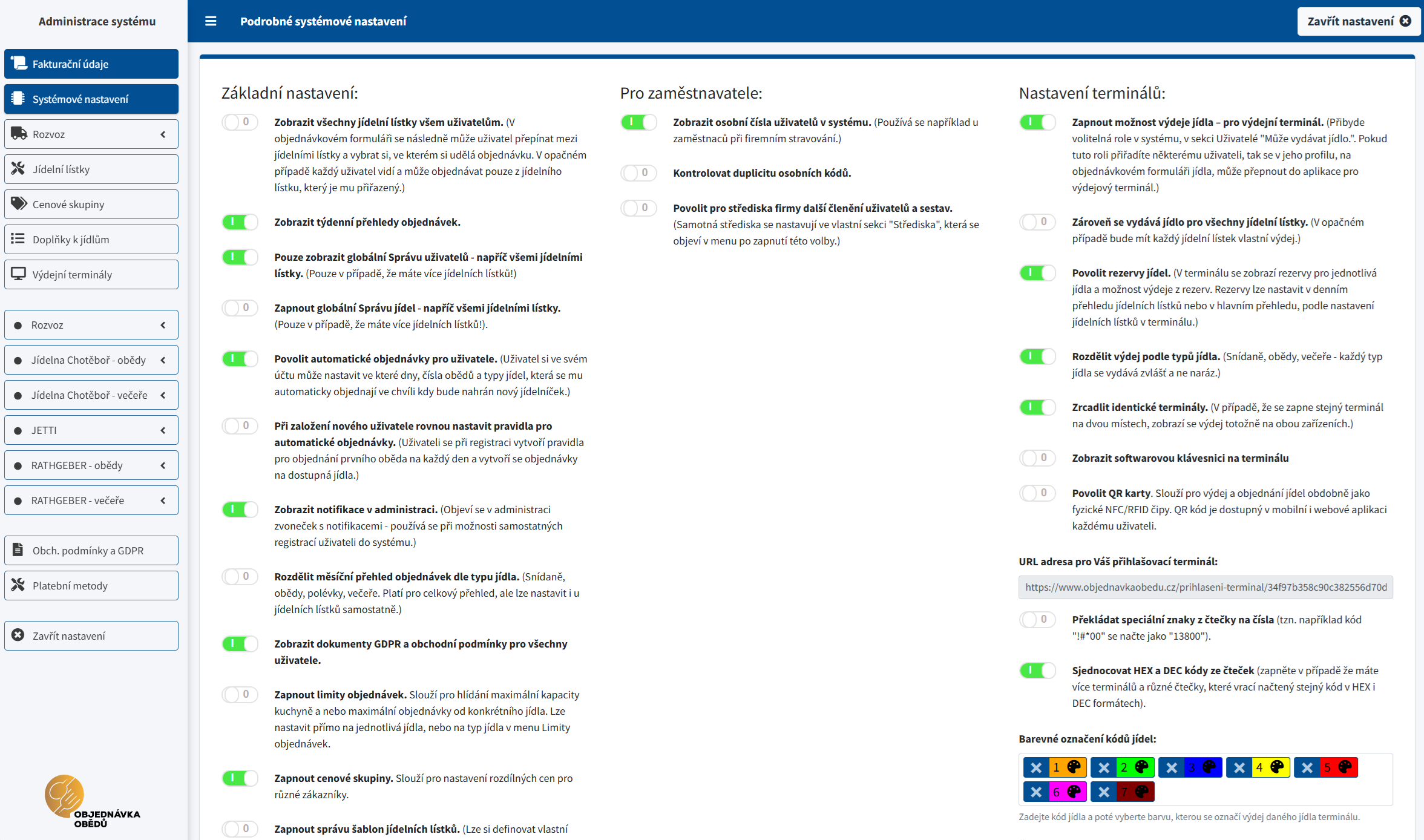 Systémové nastavení ovlivňuje chování celého systému. Některé volby se zobrazují jen při zapnutých modulech (např. rozvoz, cenové skupiny nebo terminály).