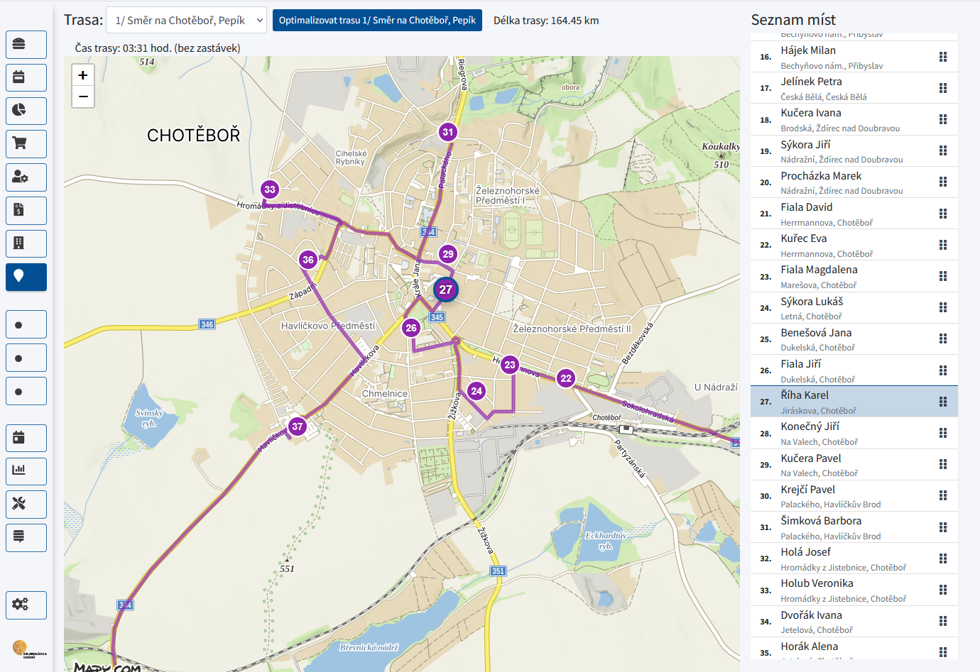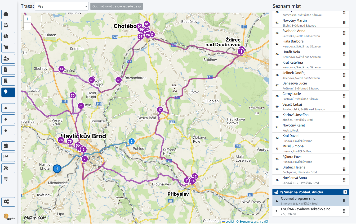 Optimalizace přepíše stávající pořadí na trase a nelze se k němu vrátit. Pokud máte pořadí ručně doladěné, po optimalizaci ho bude potřeba znovu upravit.