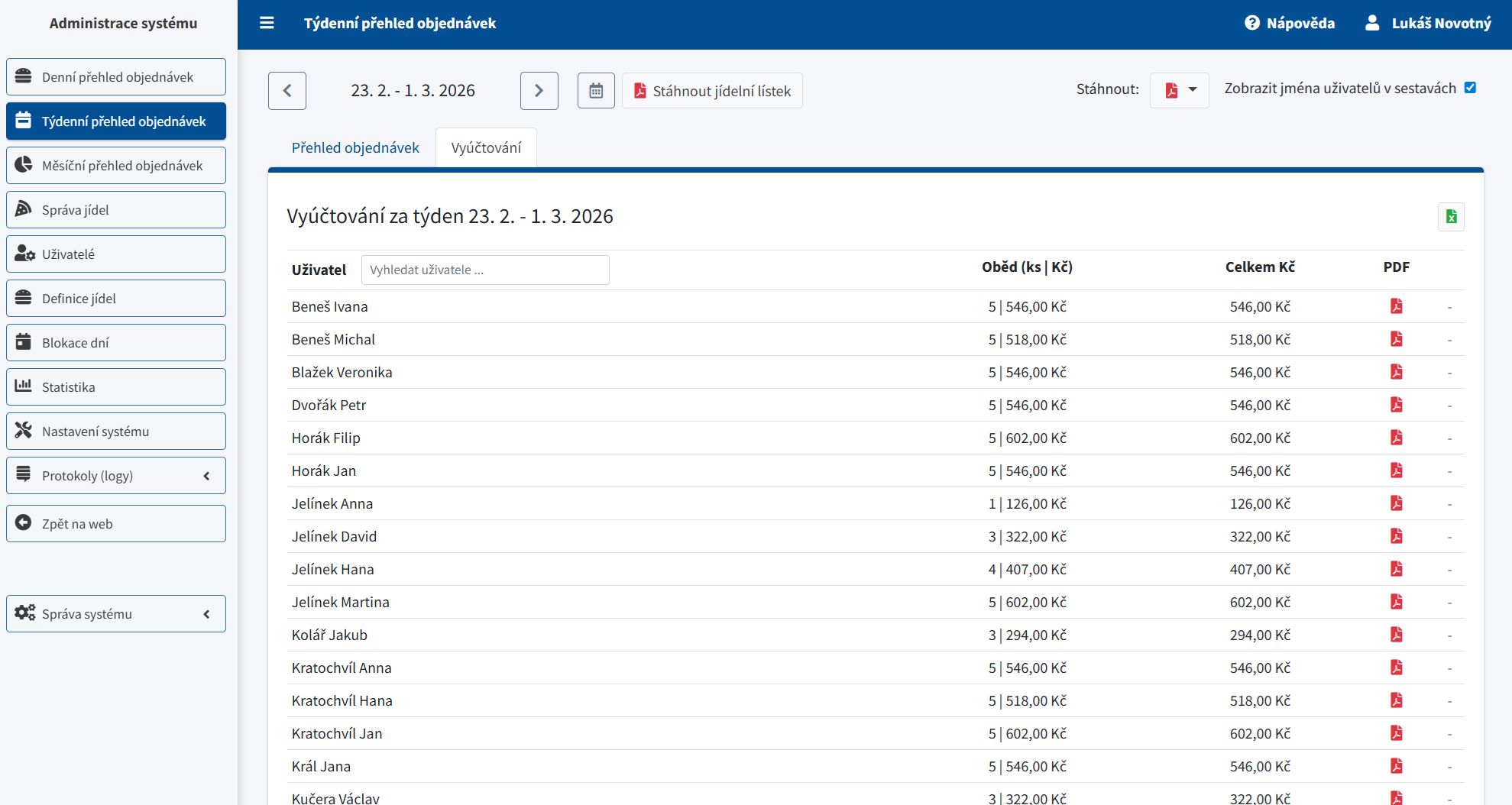 - Přehled uživatelů bez objednávek (PDF) - kdo v týdnu neobjednal.