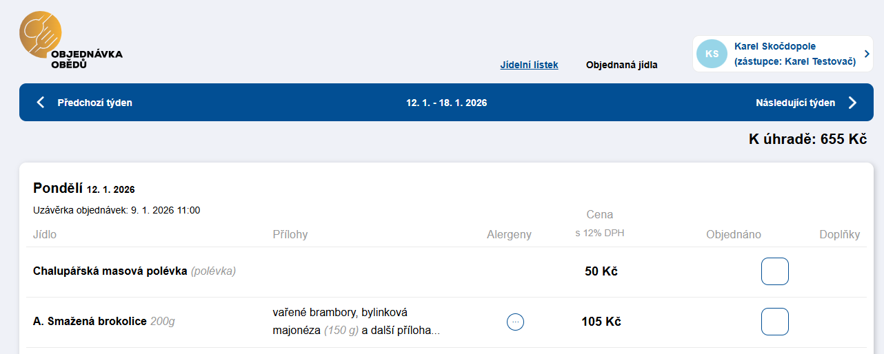 K čemu se hodí: často se používá ve firmách, kde se strava vyúčtovává až na konci období (např. jednou měsíčně). Zároveň to simuluje běžný provoz, kdy dodavatel jídlo rozváží průběžně a platby vybírá zpětně – typicky třeba jednou týdně v pátek (frekvence je ale libovolná).
