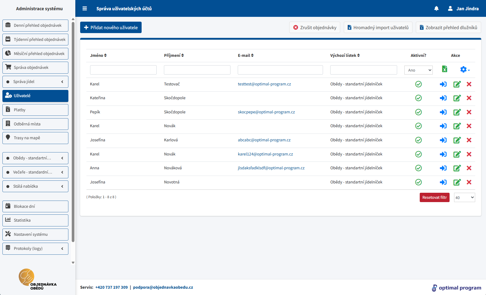 Standardní uživatel (strávník) je běžný účet, který si objednává jídla. Nevidí administraci a nemá žádná administrační práva.